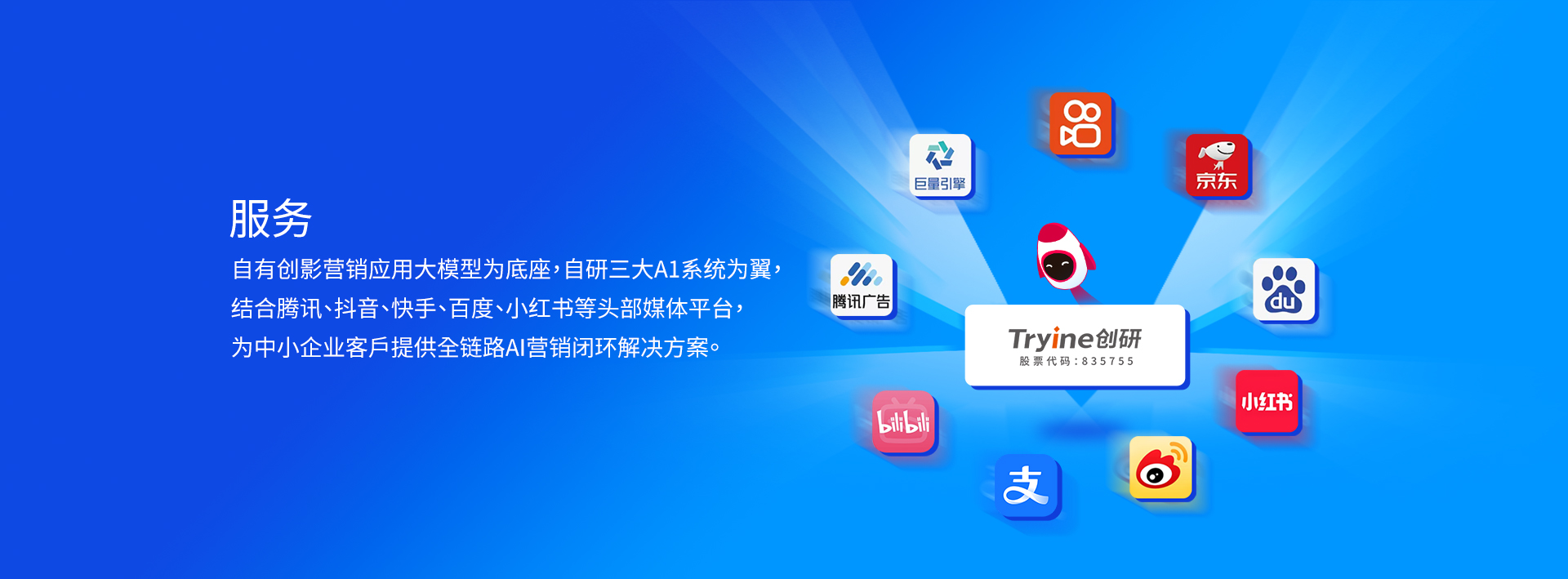 公司以自有创影营销应用大模型为底座,依托自研的三大AI系统,全面接入DeepSeek R1满血版,全链路营销场景深度应用,结合腾讯、抖音、快手、百度、小红书等头部媒体平台,为中小企业客户提供“从项目评估、创意创作、内容生产、策略制定、智能投放到效果分析优化一体化”的全链路AI营销闭环解决方案,实现精准营销与智能决策。